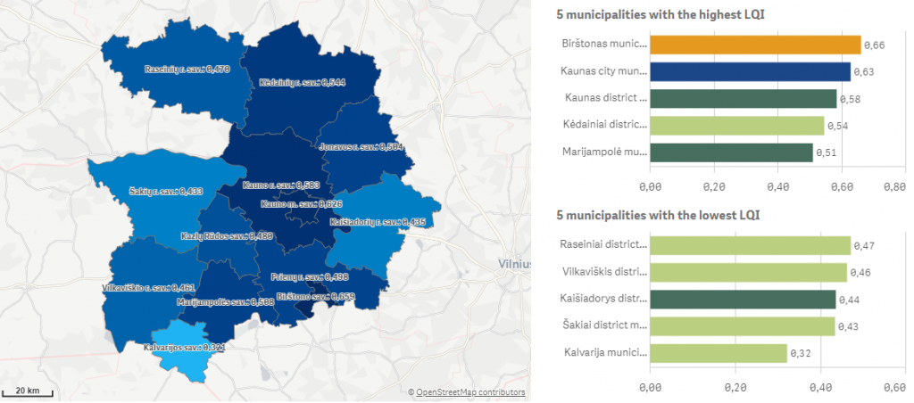 The Municipal Life Quality Index (LQI) was compiled to assess the differences between Lithuanian municipalities in 2013 – 2020.